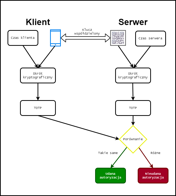 Dzięki rozwiązaniom takimi jak Google Authenticator, Authy albo KeePassXC, metoda staje się jeszcze bezpieczniejsza, ponieważ wykorzystują one technologię TOTP (Time-based One Time Password). W skrócie, podczas powiązania naszego konta z aplikacją należy zeskanować kod QR lub przepisać kod. Po pomyślnym zaimportowaniu klucza współdzielonego, następuje proces wyliczania hasła.