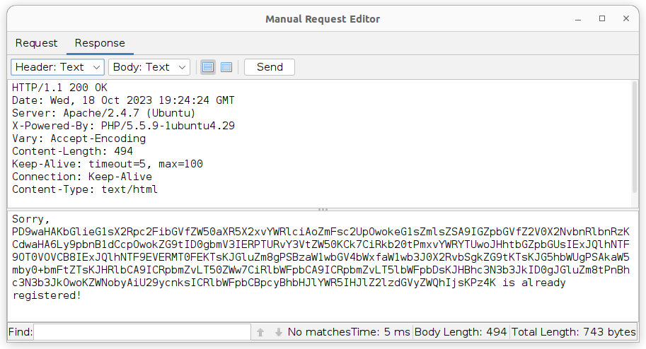 Jak widać na powyższym screenie, aplikacja zwróciła nam żądane dane. Odkodujmy je więc w dekoderze ZAP-a: