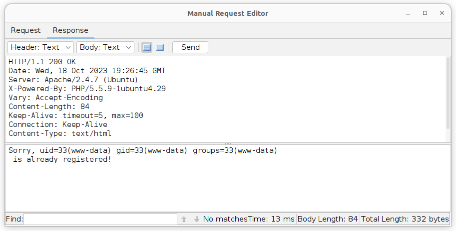 Sorry, uid=33(www-data) gid=33(www-data) groups=33(www-data)